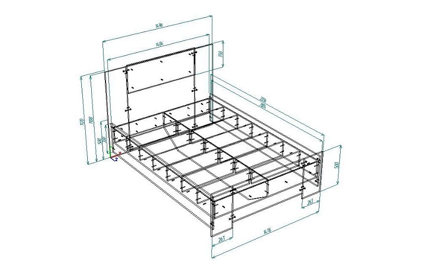 | Кровать односпальная | 250 | 600 | 500 |