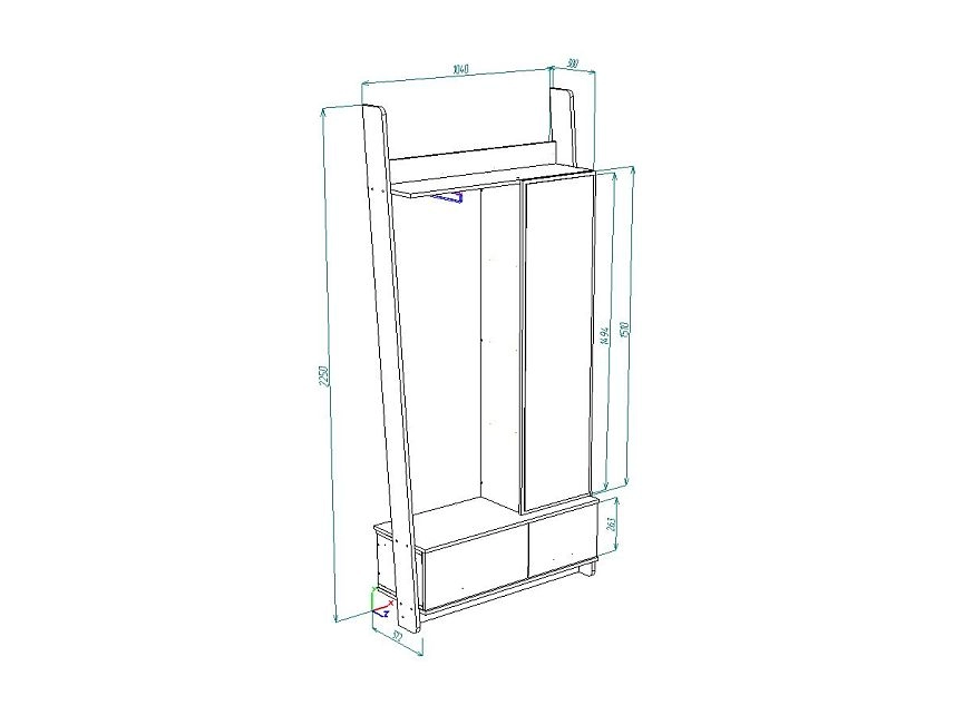 | Шкаф угловой 1 дверный | 350 | 800 | 600 |
