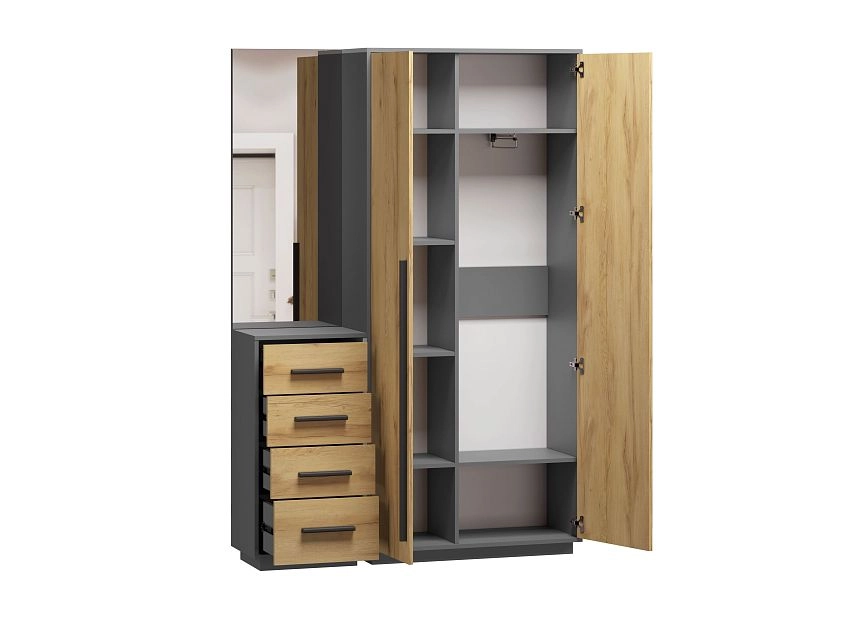 ЛДСП 16мм. Кромка в цвет корпуса. Направляющие на выдвижные ящики 100%. Штанга выдвижная 300мм. Ручки на шкаф арт.39215, ручки на комод арт. 39241
