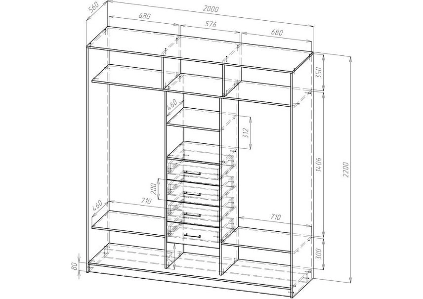 3. Если высота шкафа превышает 2200 мм, рекомендуется добавить дополнительную полку в секцию с полками.
