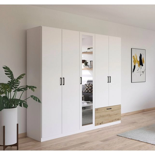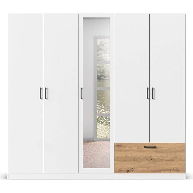 - Шкаф распашной Бари-4 Белый / Дуб Бунратти