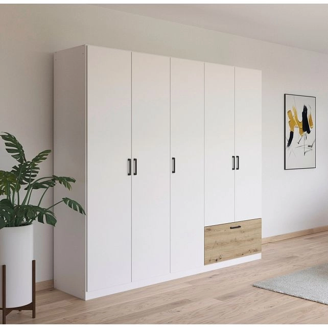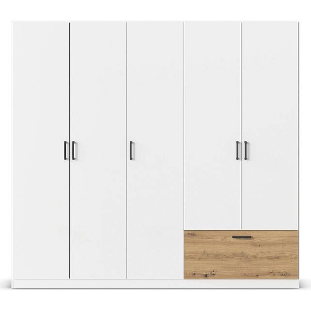 - Шкаф распашной Бари-5 Белый / Дуб Бунратти