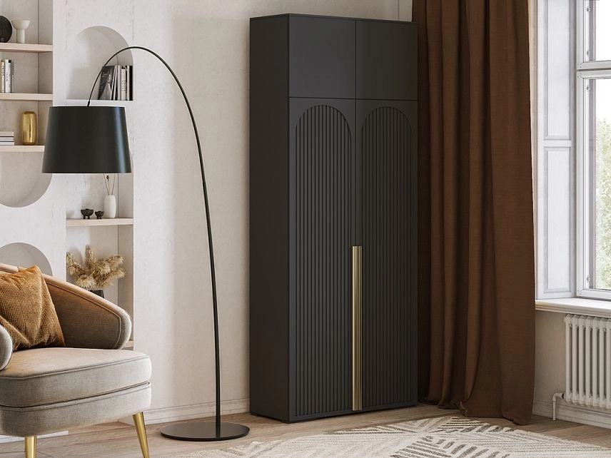 - Шкаф распашной Брей-2 Хит с антресолью Черный
