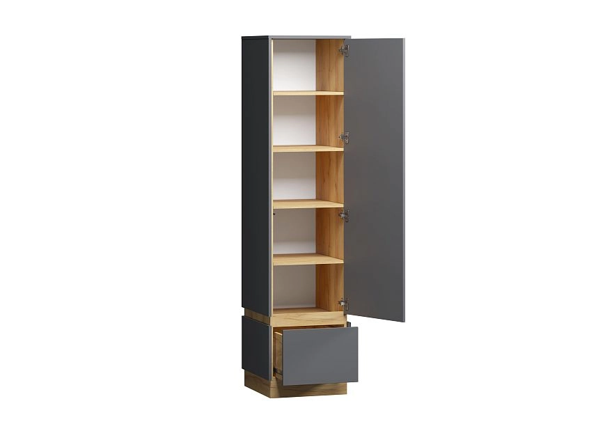 Комплектация: наполнение: Б (4 полки) + ящик, шариковые направляющие 100% выдвижения, петли без доводчика, система открывания Рush-to-open, кромка в цвет корпуса