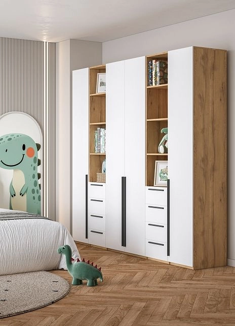 - Шкаф распашной Хейсон-16 Белый Дуб Золотистый