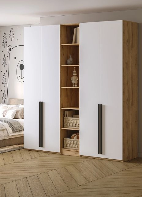 - Шкаф распашной Хейсон-17 Белый Дуб Золотистый