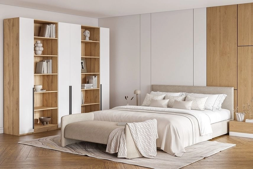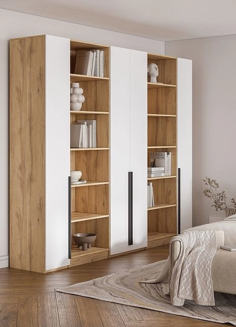 - Шкаф распашной Хейсон-3 Белый Дуб Золотистый