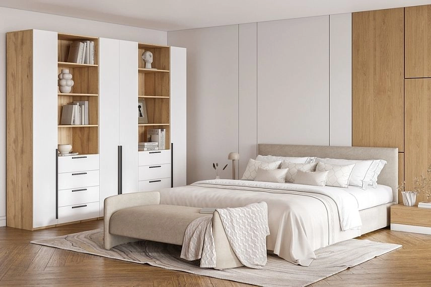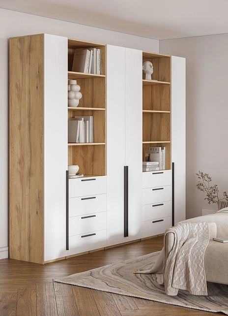 - Шкаф распашной Хейсон-4 Белый Дуб Золотистый