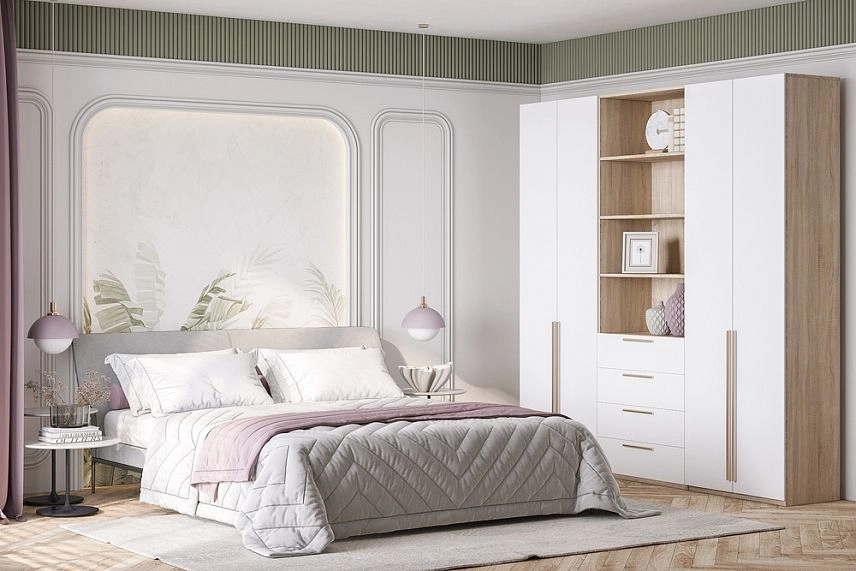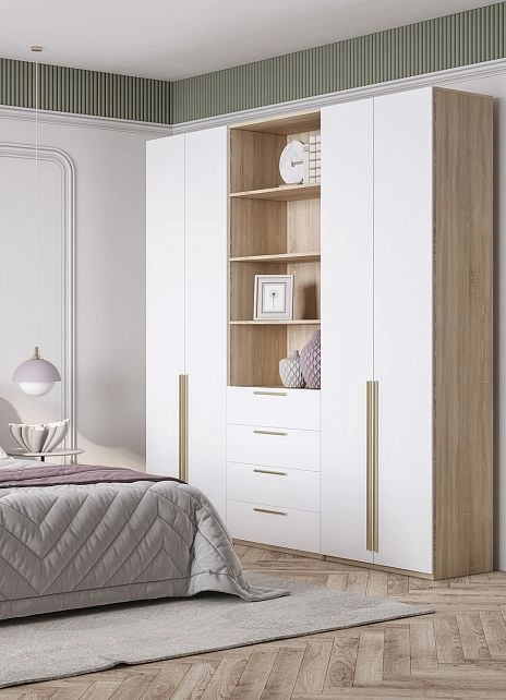- Шкаф распашной Хейсон-9 Белый Дуб Сонома