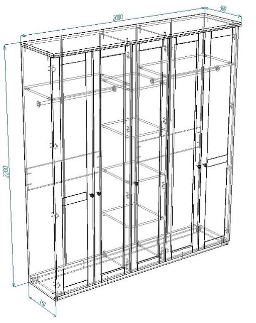 | Шкаф 5 дверный, широкий от 2000 до 2500 мм (6-7 пачек) | 600 | 1800 | 900 |
