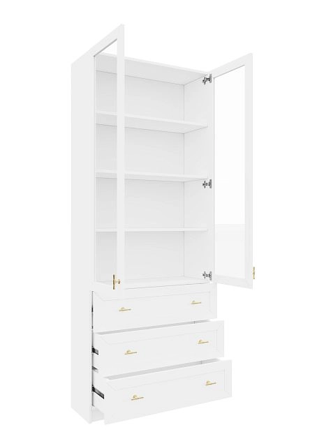 Комплектация: фасады - рамка МДФ квадро + вставка ЛДСП/стекло простое, задняя стенка ЛДВП белого цвета, ручка ZA2391 кнопка золото K-Gold, арт. № 39512-1, петли без доводчика, роликовые направляющие