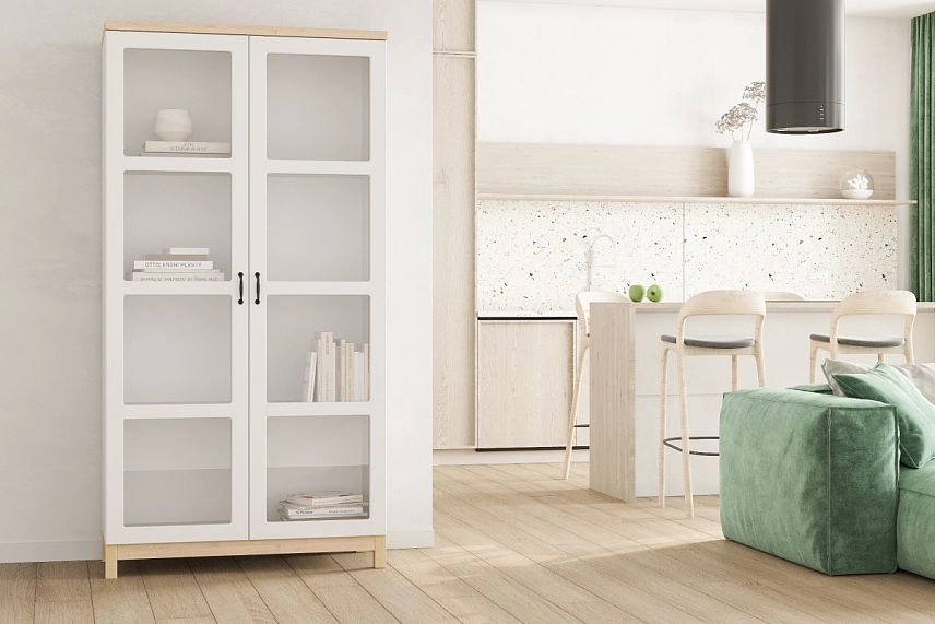 Комплектация: фасады с фрезеровкой, петли без доводчика, ножки массив дерева, стекло простое