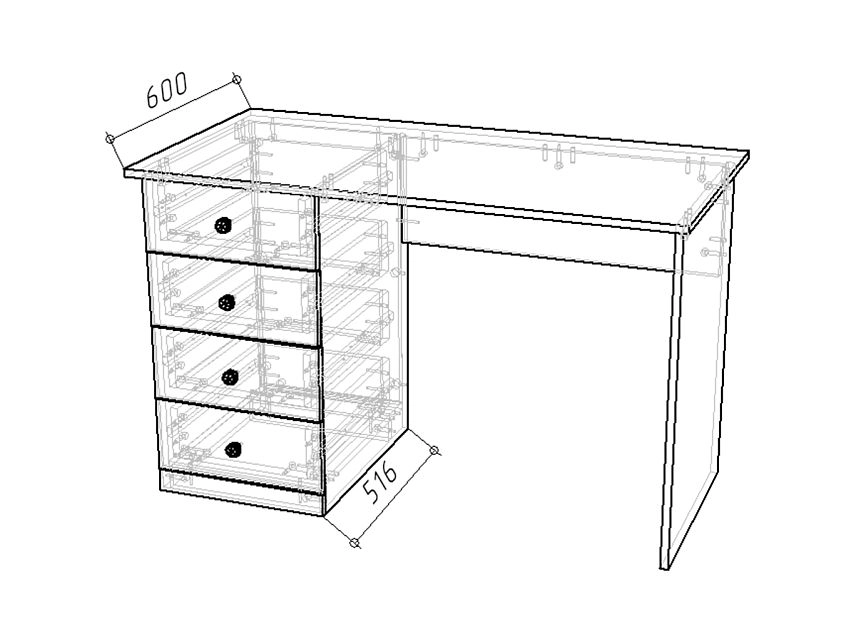 Комплектация: петля без доводчика, шариковые направляющие 100% выдвижения без доводчика, столешница кромка 2мм в цвет корпуса