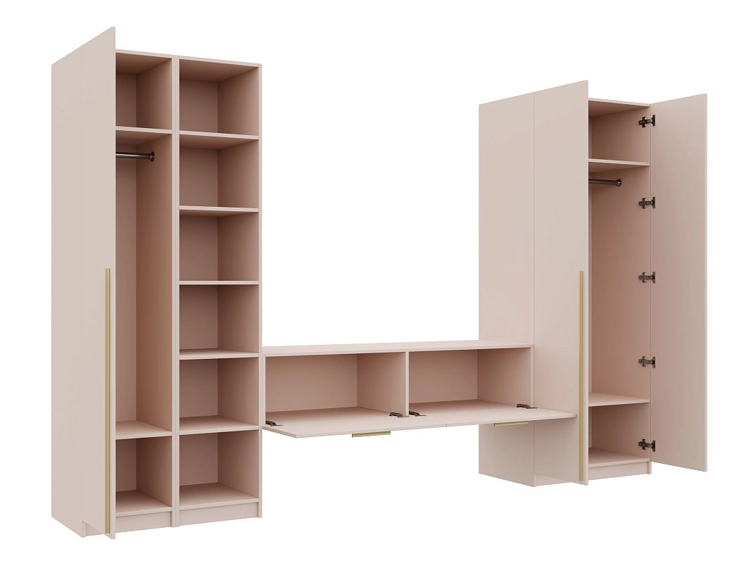 Петли без доводчиков. Направляющие шариковые 100% выдвижения без доводчика. Штанга металл Ф25мм. Ручки: Ручка CPA1 мебельная накладная м.ц.160 мм L 188мм,алюминий золото RCPА1A.188GADI, Ручка CPA1 мебельная накладная м.ц. мм L 1000мм,алюминий золото RCPА1A.1000GADI