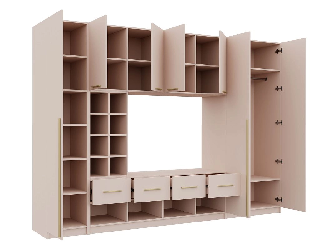 Петли без доводчиков. Направляющие шариковые 100% выдвижения без доводчика. Штанга металл Ф25мм. Ручки: Ручка CPA1 мебельная накладная м.ц.160 мм L 188мм,алюминий золото RCPА1A.188GADI, Ручка CPA1 мебельная накладная м.ц. мм L 1000мм,алюминий золото RCPА1A.1000GADI