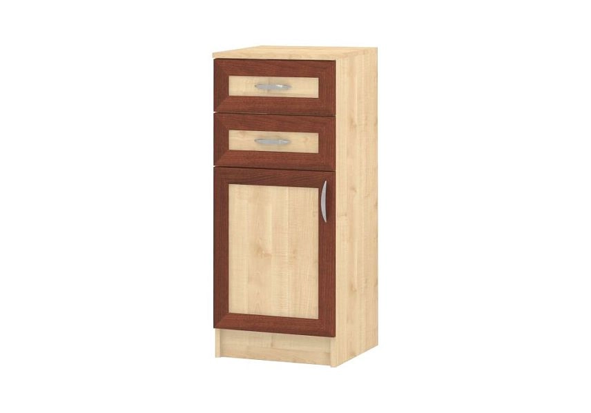 Комплектация: корпус - ЛДСП 16 мм с кромкой ПВХ 0,4 мм, фасады - рамочные, задняя стенка ХДФ (ламинированная), металлические ручки-скобы, направляющие роликовые, петли на фасадах металлические, угол открывания 90 градусов, без доводчиков