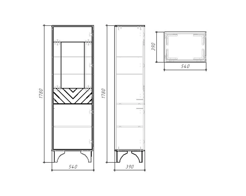 Комплектация: система открывания Рush-to-open, ножки металл черные 150мм, за стеклом, стеклополки